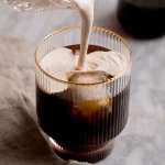 - Pour the cold brew in a glass filled with ice, then gently pour over the maple cream.